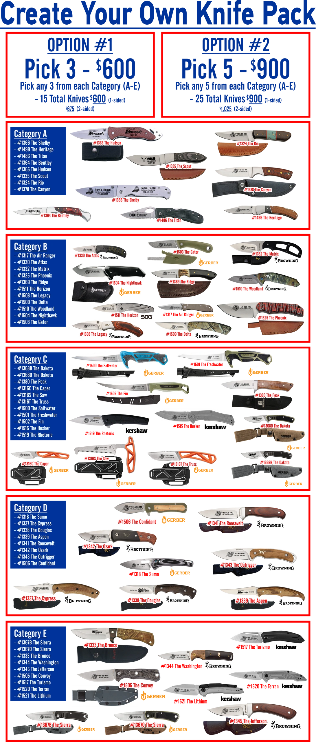 *Packages only available for current customers of The Stonebridge Collection, Inc. that have purchased our 1400 and 2400 Series Knives.